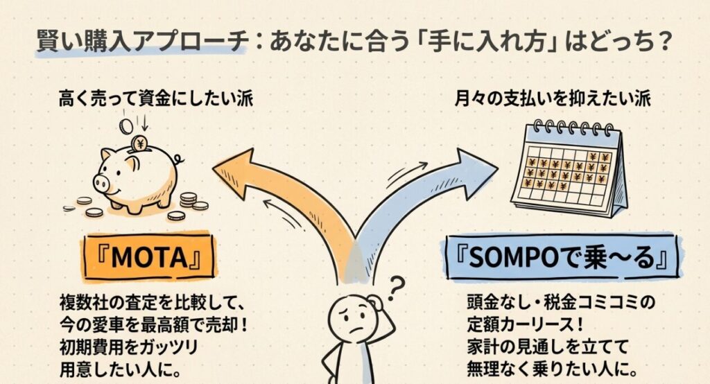 ここでは、新型フリードをより賢く手に入れたい人向けに、MOTAとSOMPOで乗~るの2つを紹介します。