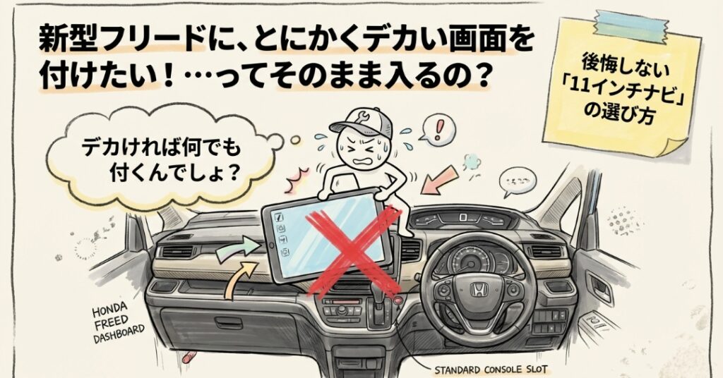 新型フリードGT系で11インチ化を考えるなら、まず覚えておきたいのは、大きい画面にすること自体は可能だけれど、選び方で満足度が大きく変わるということです。